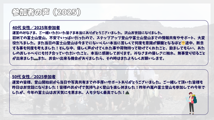 2025年 参加メンバー15名の内、13名が登頂、2名が8合目まで、全員無事下山